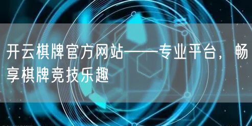 访问开云棋牌官方网站,体验专业棋牌竞技平台,畅享棋牌乐趣!