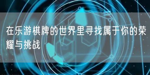 在乐游棋牌的世界里寻找属于你的荣耀与挑战
